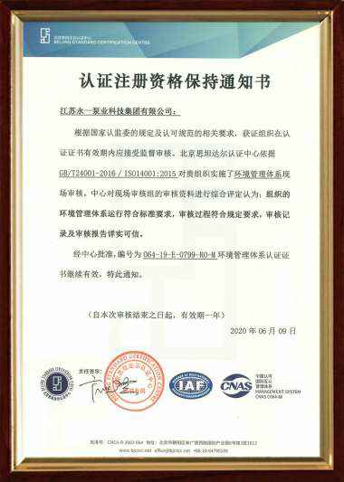 环境管理ISO14001认证证书年审